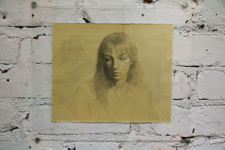 To work within the graphē – from the Greek word “to draw” or “to write,” the compound meaning “to paint with light,” or “of a certain affinity” – artists AJ Kyser and Lara Saunders are mediating works together that, inherent in their technical process, have the ability to capture a realistic likeness. Though physical likeness is a marginal aspect; in many cases together they consciously move away from the ability their respective mediums give them to depict someone. Creating a chance operation equivalent to a portrait. Kyser’s photographs mark a departure from the boundaries of photography by deriving subjectivity from Saunders’ approach to figurative illustration. We are drawn backward to a more courtly time when the mechanism of photography took after painting and drawing. Moreover, it challenges the boundaries between the nature of illusion and reality. The subjects are irrevocably affixed in Kyser’s cyanotypes, lith prints, and seriality. Evoking the tactical quality of graphite – fragmented and manipulated – embracing a fusion of technical precision and subjective interpretation. Suggesting that the artists’ hands are as critical as their eyes in the photographic process. From the hands of the draftsman, Saunders’ subjects emerge within a larger graphē, searching for a wholeness that eludes them. Deliberately gestural – encompassed in a myriad of graphite shadow shapes – the work captures the breadth of human form through the intentional absence of detail. Her renditions of the body, though some partial, appear vivid, grounded in historical influences, and objective in their life. Her compositions become less about the subjects and more about her presence and imprint of them. Thus, they are examples of self-expression and self- creation. This collaboration represents an exchange of inspiration and technique. Kyser and Saunders lend each other the strengths of their respective mediums, surpassing literal limitations and fusing context with symbolic meaning. Between the portrayed and the viewer stands the artists, with shared intentions but distinct in approach– if not revealed, then certainly present. – Matt Lovsted